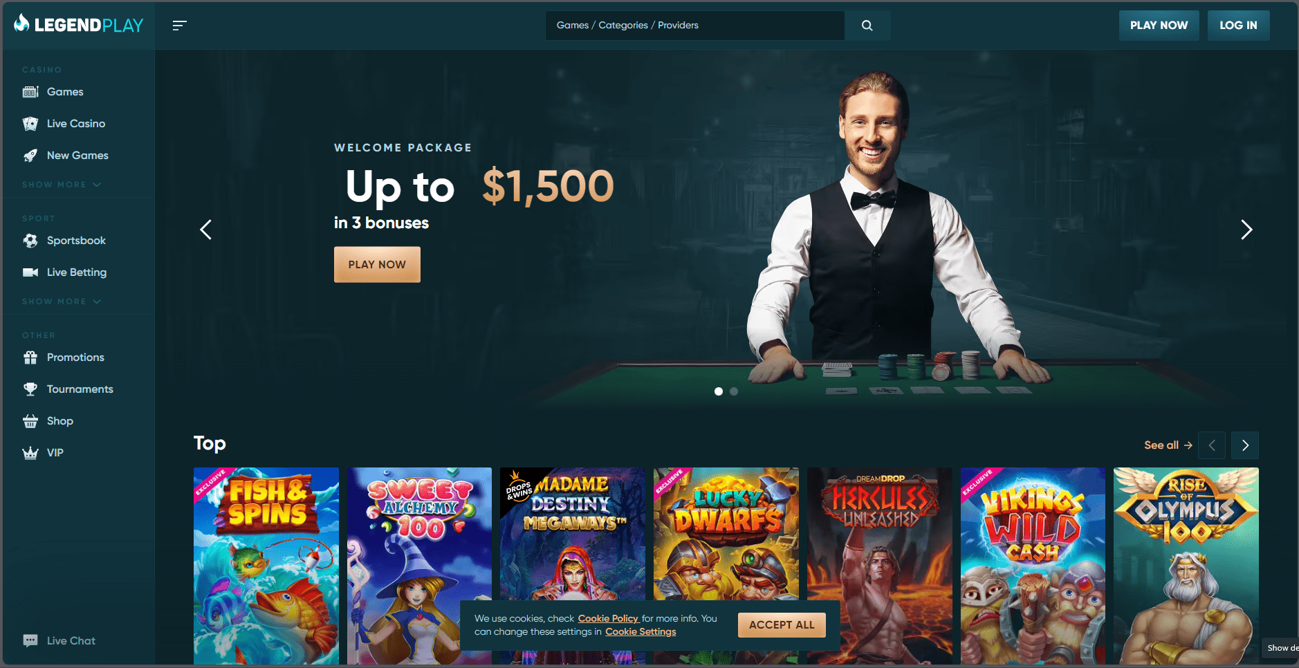 The new online casino LegendPlay was introduced in 2022 by Rabidi NV, a company whose brands we have previously tested, including Buran, OhMySpins, and Cazimbo. Their most recent endeavor blends an amazing assortment of over 3500 games with a noteworthy sportsbook segment that provides betting opportunities on thousands of events. There are also tons of amazing promos available that will make the game even more enjoyable and increase your winnings.