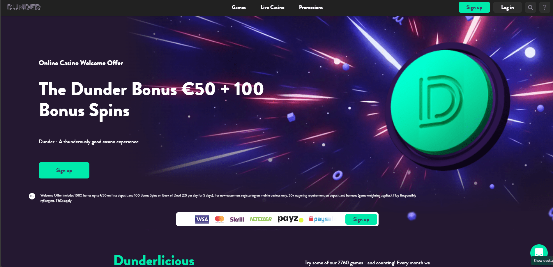Dunder Casino on trendikäs online-kasino, jossa on yli 1000 erilaista peliä, yli 500 mobiililaitteilla, useilta johtavilta alustoilta, mukaan lukien NetEnt, Microgaming, Play'n GO, Quickspin, NextGen Gaming, SGI, IGT, WMS, Bally, Barcrest , Edict, Thunderkick, Elk ja Betsoft sekä Evolution Gamingin live-jakajapelit. Monet näistä peleistä ovat pelaajien saatavilla sekä kotona että tien päällä. Kasino luotiin vuonna 2016 modernilla käyttöliittymällä, joka tarjoaa helpon pääsyn mihin tahansa verkkosivuston osaan. Dunder Casinoa säätelevät Maltan lait.